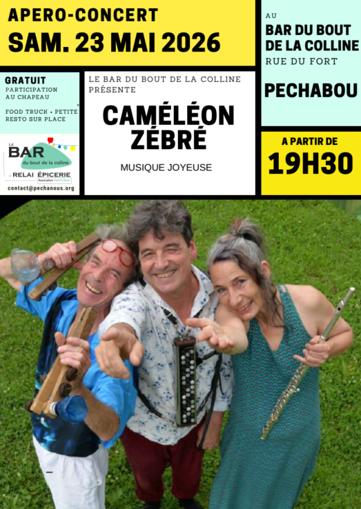 – Samedi 23 mai, à 19h30 : Apéro-Concert du Caméléon Zébré !